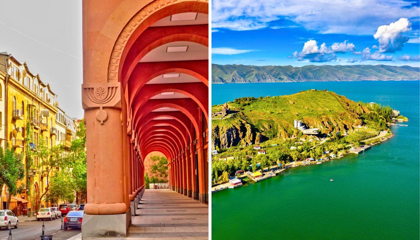 En la desconocida región del Cáucaso, te espera un país apenas explorado y con una rica historia y cultura intactas. Arranca este circuito en Ereván, la capital armenia, donde deambular por grandes avenidas de estética soviética, aprender sobre la historia del genocidio armenio y divisar impecables vistas del bíblico monte Ararat. Aunque si buscas las vistas más espléndidas de esta montaña, lo mejor es que te dirijas a Khor Virap. Visita bodegas y monasterios centenarios, como el de Noravank o el de Gueghard. La naturaleza en estado puro te espera en el lago Seván.